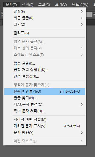 ¼±ÅÃÇÑ »óÅ¿¡¼ ¹®ÀÚ(Type) > À±°û¼± ¸¸µé±â(Create Outlines) ¸Þ´º¿¡¼ ¾Æ¿ô¶óÀÎ ¸¸µé±â (´ÜÃàŰ Shift+Ctrl+O)ÇÏ¸é µË´Ï´Ù.